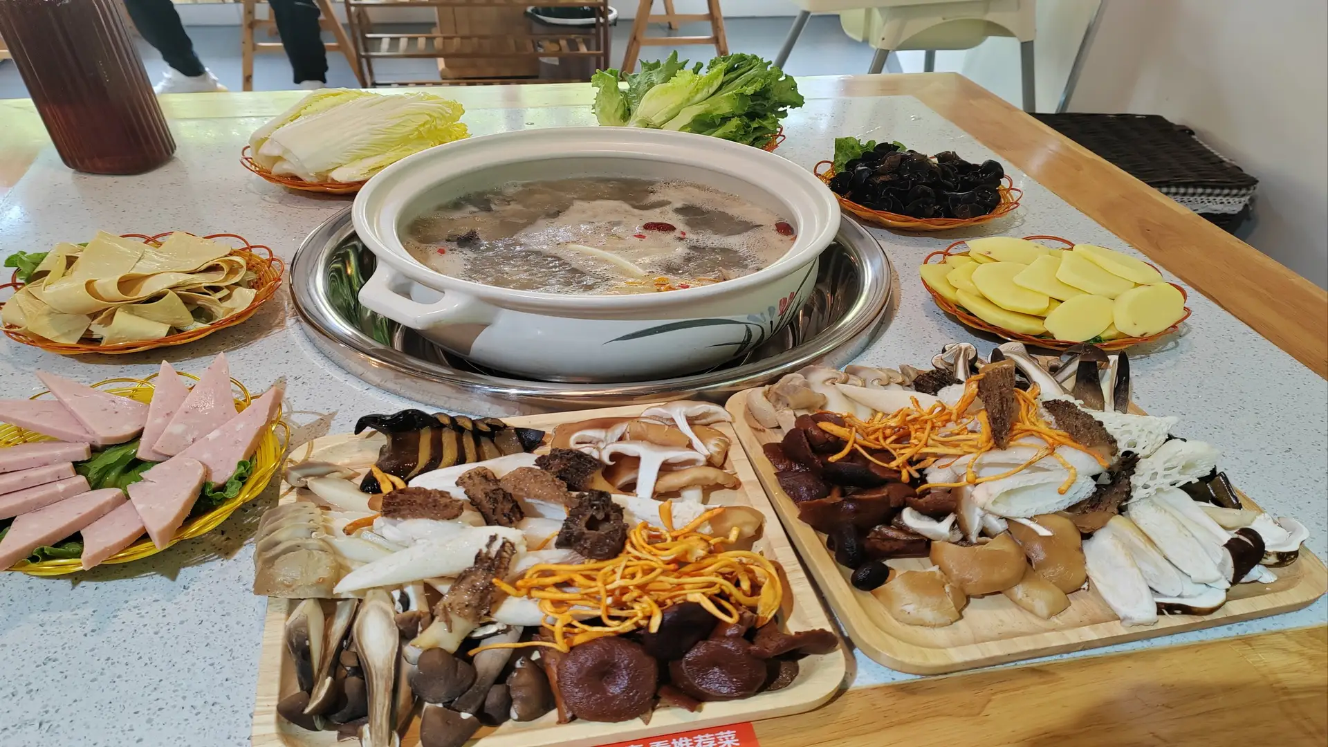 野生蘑菇热盘采用精致的新鲜真菌(例如珍贵的鸡肉)精选 (Jizun), 豪华的田园鞋 (Songrong), 还有强大的牛肝菌 (Niuganjun). 这些蘑菇经过精心觅食, 确保它们处于最新鲜,最美味的状态. 热锅是通过用丰富的汤煮这些蘑菇来制备的, 通常是用鸡肉或猪肉制成的, 增强真菌的自然风味.