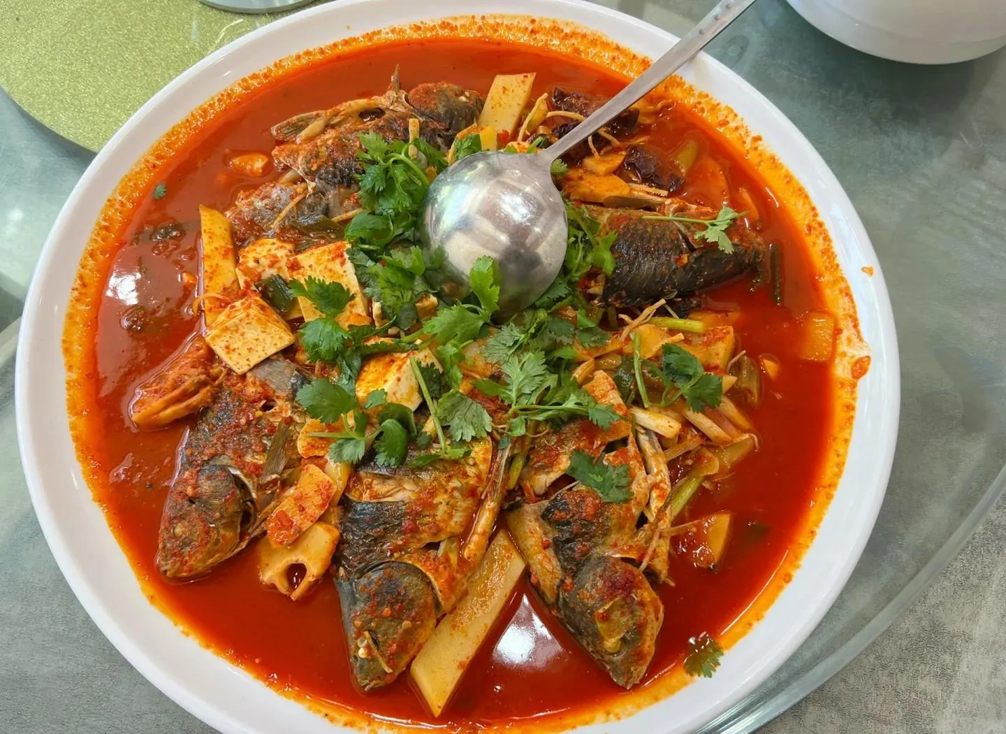 这道菜的明星是Erhai湖自己的Tengchong Crucian鲤鱼 (洱海鲫鱼), 以其精致的味道和坚固的质地而闻名. 这道菜添加了浓郁而清新的发酵木瓜醋 (木瓜醋), 这是Bai Cuisine的关键要素. 其他必要成分包括新鲜的辣椒, 蒜, 姜, 还有一堆草药,使菜肴增加深度和复杂性.