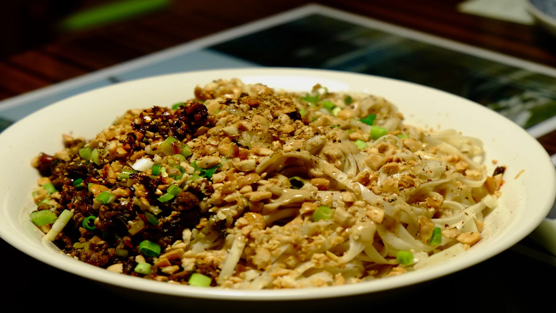 To prepare Yibin Ran Mian, one must also include finely chopped peanuts for a crunchy contrast, and a generous drizzle of homemade chili oil that adds a fiery kick. The chili oil is made with a blend of dried red chili peppers, Sichuan peppercorns, and various spices, each contributing to the dish’s depth and complexity.
