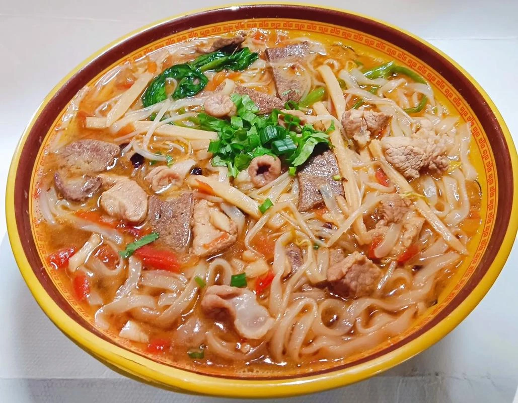 – Rice Noodles: These are the base of the dish, often flat and wide, providing a satisfying texture that soaks up the rich broth.