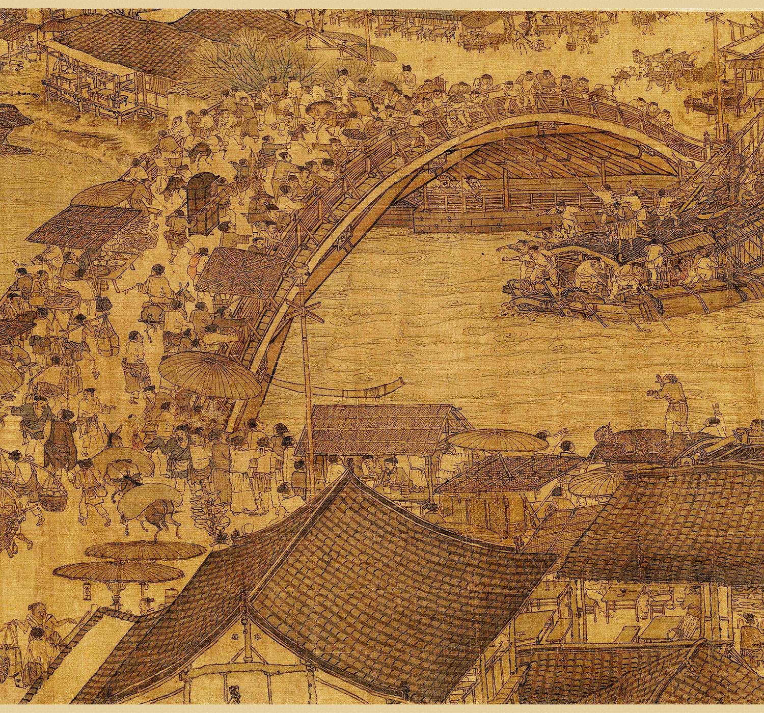La peinture remonte à la dynastie de la chanson nord (960–1127), Une période de grande prospérité économique et de réussite culturelle dans l'histoire chinoise. La capitale de Bianjing (Kaifeng d'aujourd'hui) était l'une des villes les plus grandes et les plus prospères du monde à l'époque. Zhang Zeduan, un peintre de la cour, a capturé l'essence de cette ville dynamique dans son travail. La peinture a été initialement collectée par l'empereur Huizong de Song, qui l'admirait grandement et inscrit le titre dans son distinctif “or mince” scénario.