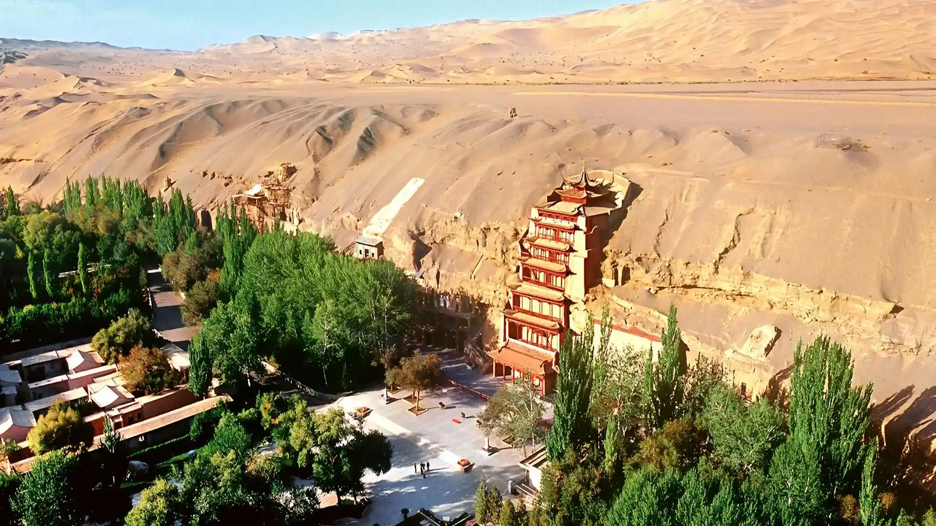 The Mogan Caves are situated in the western part of Gansu Province, in the city of Dunhuang, 大约 25 kilometers southeast of the city center. The location is strategic, as it was a crucial stop on the Silk Road, facilitating trade and cultural exchange between the East and West.